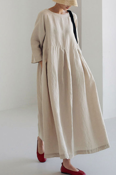 Cotton Linen Long Sleeve Loose Midi Dress