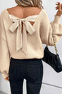 Lantern Sleeve V Neck Back Bow-knot Sweater - Khaki / S is backordered and will ship as soon as it is back in stock.