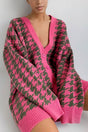V Neck Houndstooth Contrast Mid-length Cardigan
