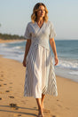 V Neck Striped Print Patchwork Dress - Black / S is backordered and will ship as soon as it is back in stock.
