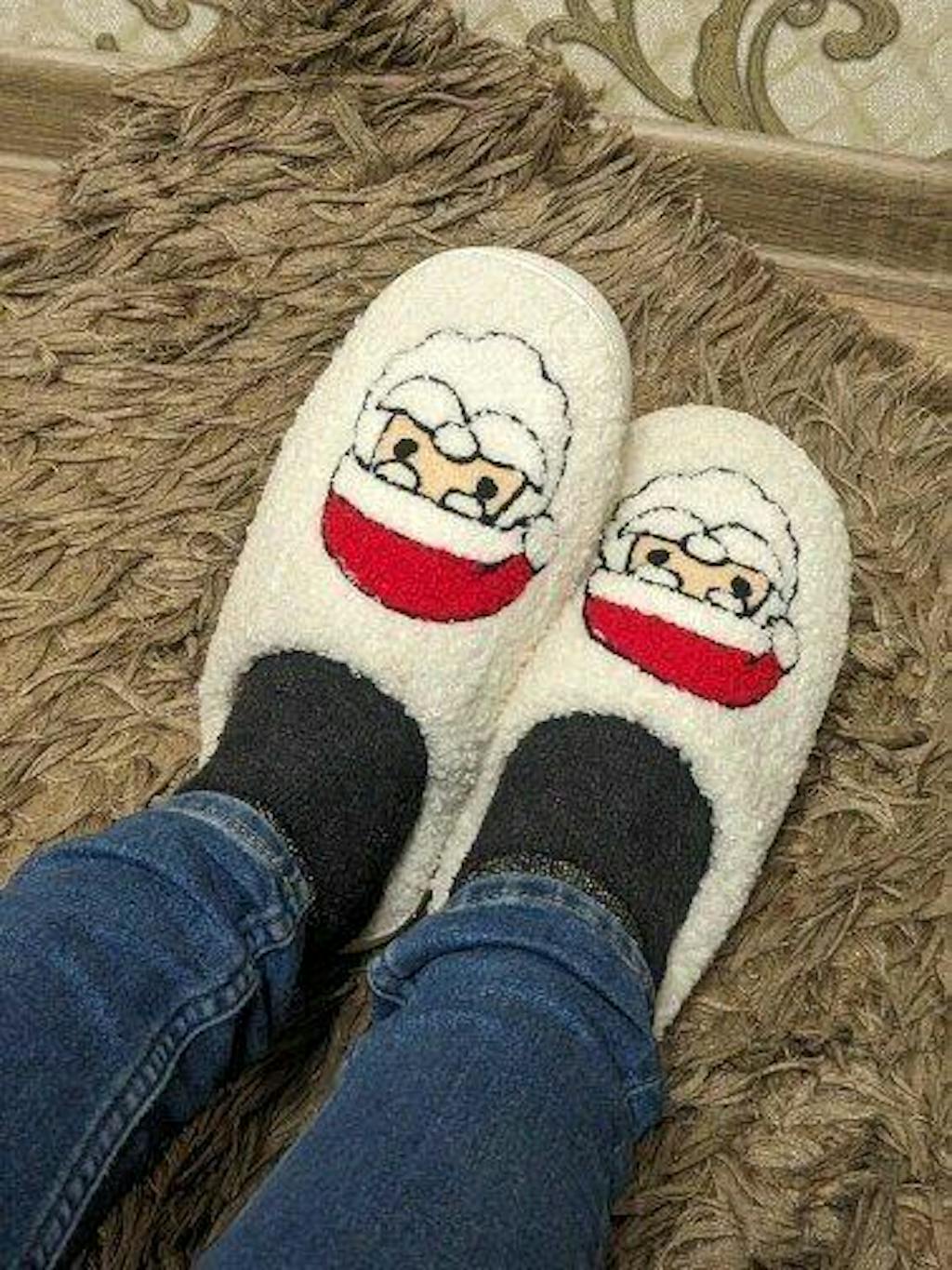 Christmas Graphic Plush House Slippers - Santa / 6-7 is backordered and will ship as soon as it is back in stock.