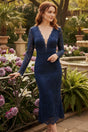 V Neck Long Sleeve Lace Bodycon Midi Dress - Blue / S is backordered and will ship as soon as it is back in stock.