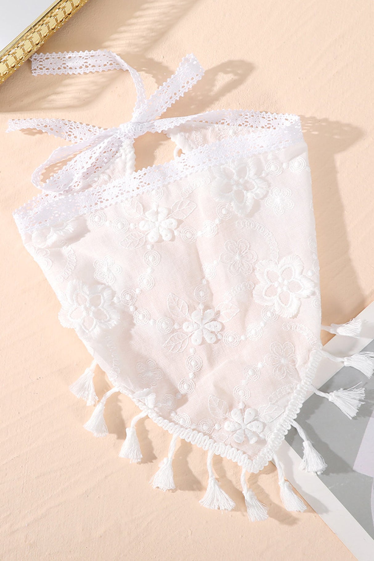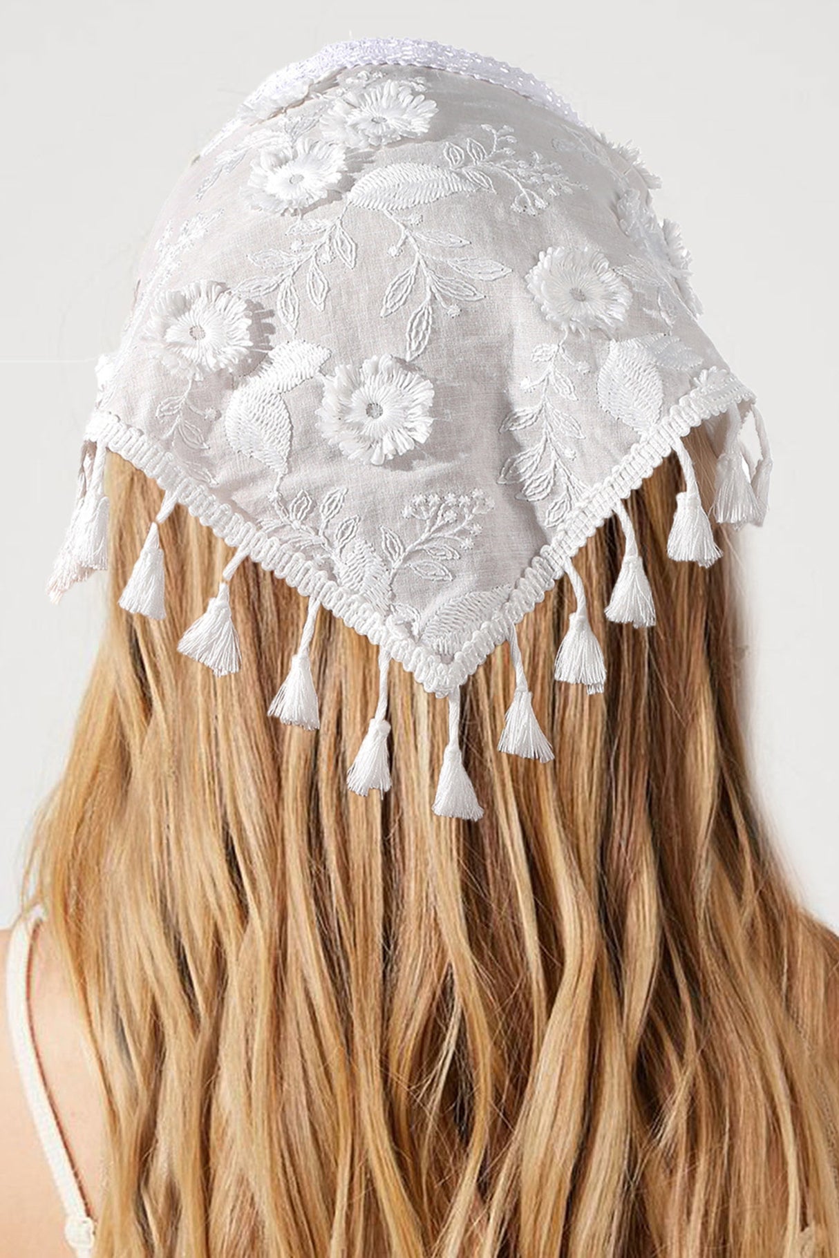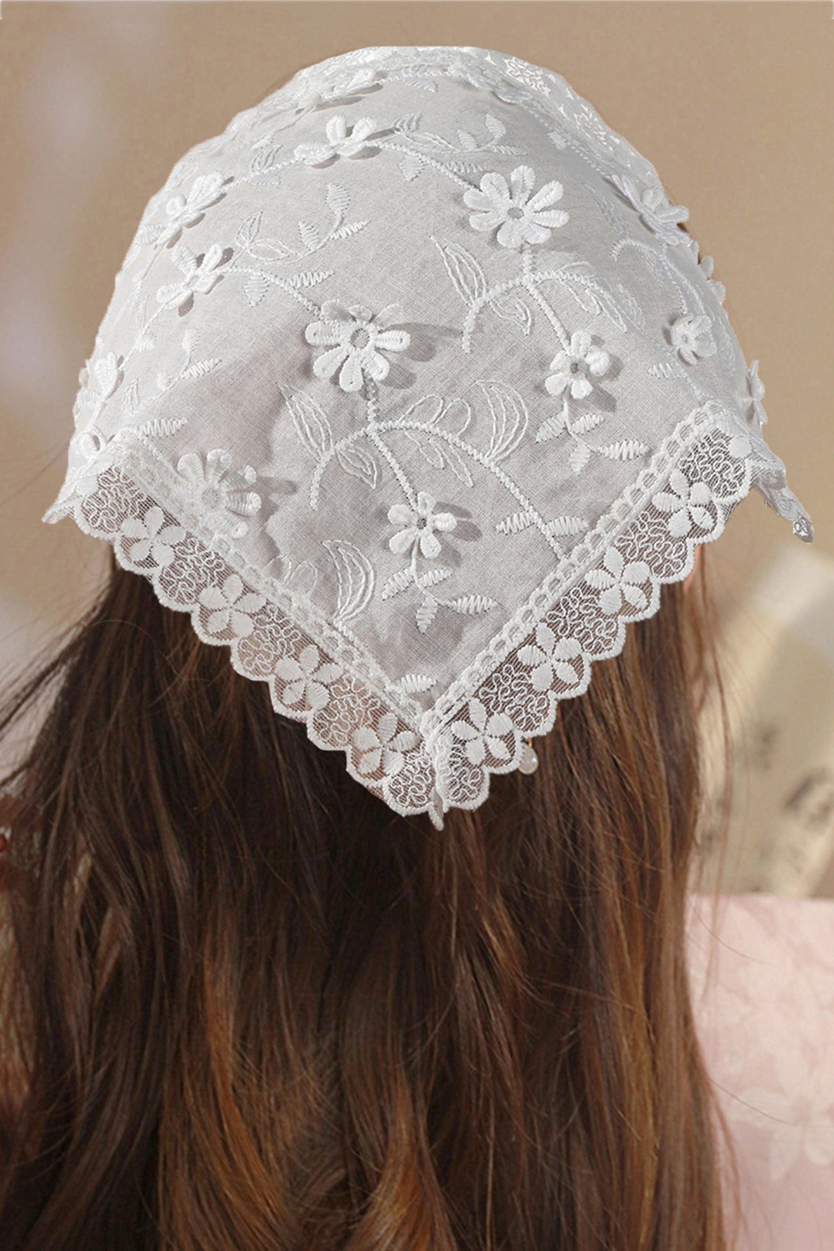 Lace Jacquard Head Scarf - White / Colorful Butterfly Lace / One Size is backordered and will ship as soon as it is back in stock.