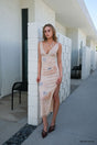 Butterfly Print Backless Slit Dress - Beige / S is backordered and will ship as soon as it is back in stock.