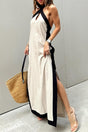 Contrast Cross Halter Neck Slit Dress - Beige / S is backordered and will ship as soon as it is back in stock.