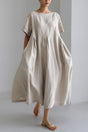 Cotton Linen Crew Neck Loose Midi Dress - Khaki / S is backordered and will ship as soon as it is back in stock.