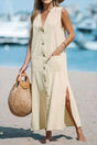 Cotton Linen Single-breasted Slit Tank Dress - Beige / S is backordered and will ship as soon as it is back in stock.