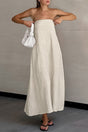Cotton Linen Smocked Strapless Dress