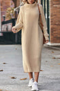 High Neck Ribbed Knit Sweater Dress - Beige / XS is backordered and will ship as soon as it is back in stock.