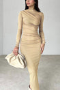 Round Neck Ruched Pack Hip Dress - Khaki / S is backordered and will ship as soon as it is back in stock.
