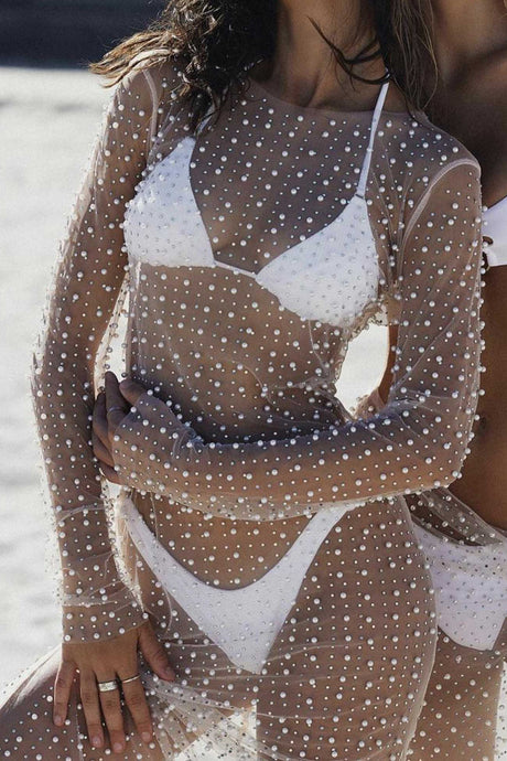 Mesh Full Pearl Cover-up Dress