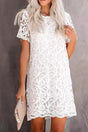 Lace Crew Neck Short Sleeve Mini Dress - White / S is backordered and will ship as soon as it is back in stock.