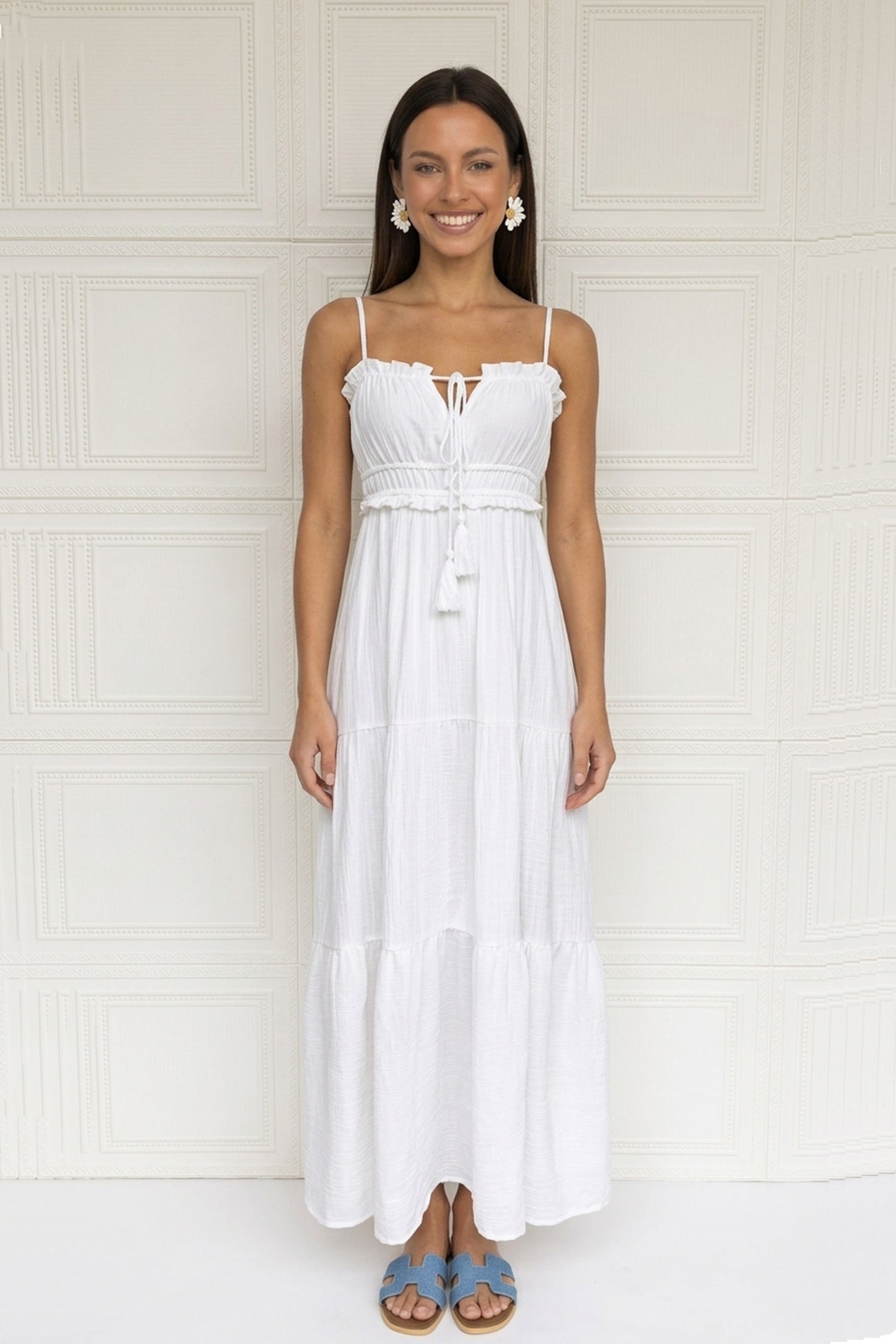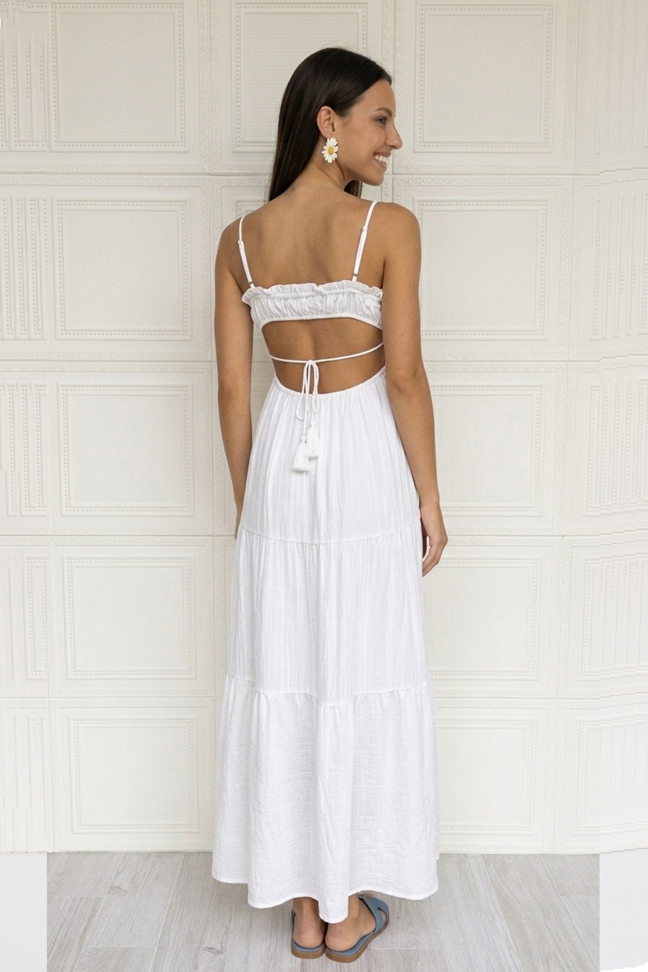 Tie-up Cutout Tiered Cami Dress - White / S is backordered and will ship as soon as it is back in stock.