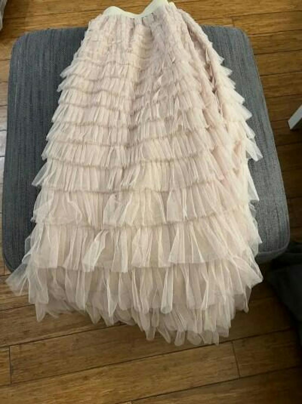 Mesh A-line Tiered Skirt - Beige / S is backordered and will ship as soon as it is back in stock.