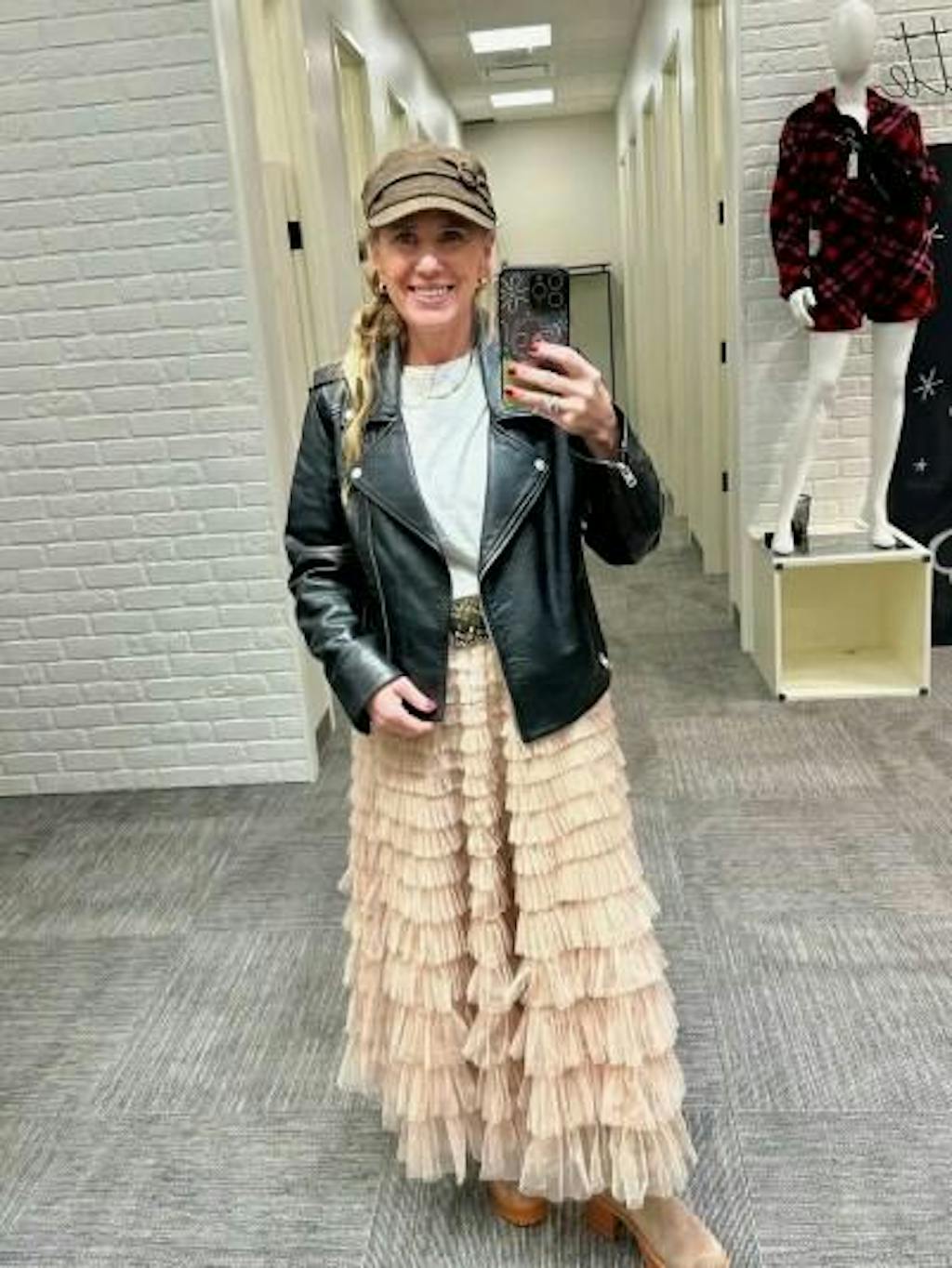- Tiered skirt.