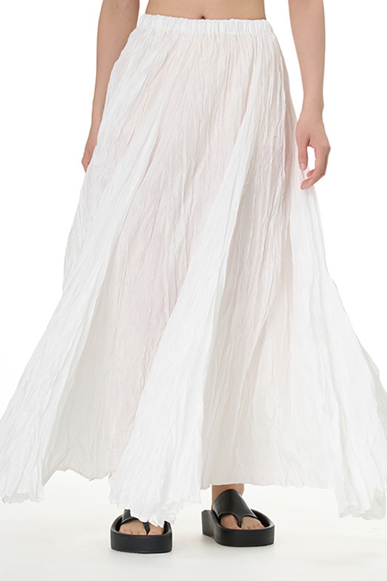 Solid Color Pleated Midi Skirt