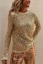 Sequin Crew Neck Long Sleeve Top - Apricot / S is backordered and will ship as soon as it is back in stock.