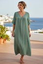 Cotton Solid V Neck Midi Dress