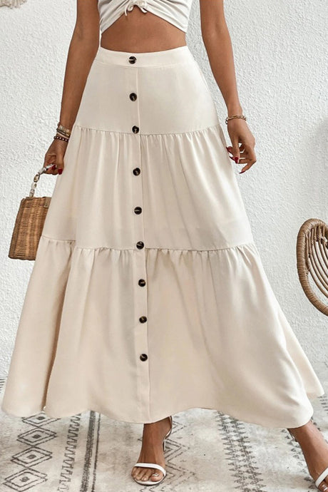 - Single-breasted Solid Color Tiered Maxi Skirt $48.00Unit price /Unavailable