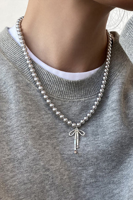 - Bow Pendant Grey Pearl Necklace $28.00Unit price /Unavailable