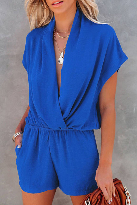- Solid Plunge Neck Short Sleeve Rompers $30.00Unit price /Unavailable