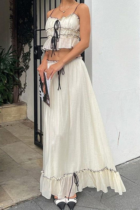 - Tie-up Crop Top Tiered Midi Skirt Suits $38.00Unit price /Unavailable