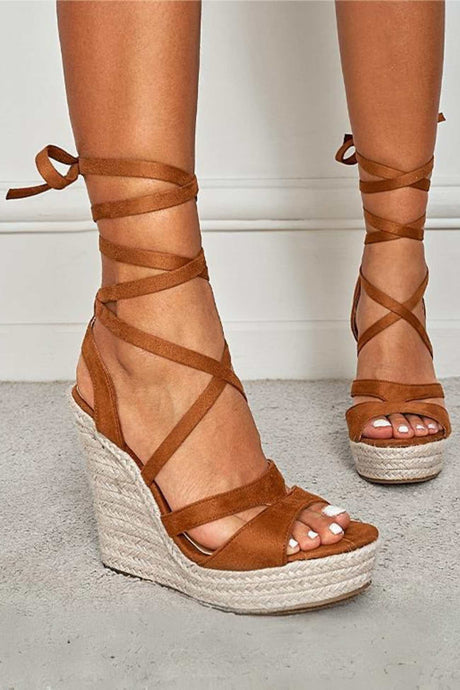 Lace Up Espadrille Wedges Sandals