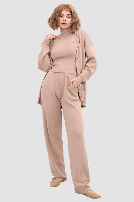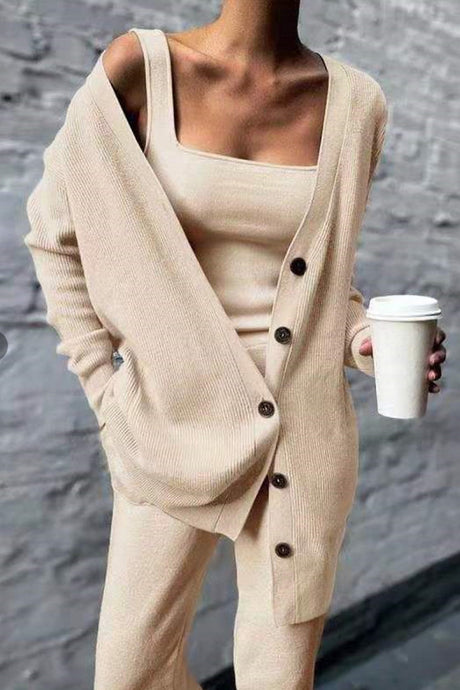 Knitted Vest Cardigan Long Pants Three-piece Set