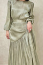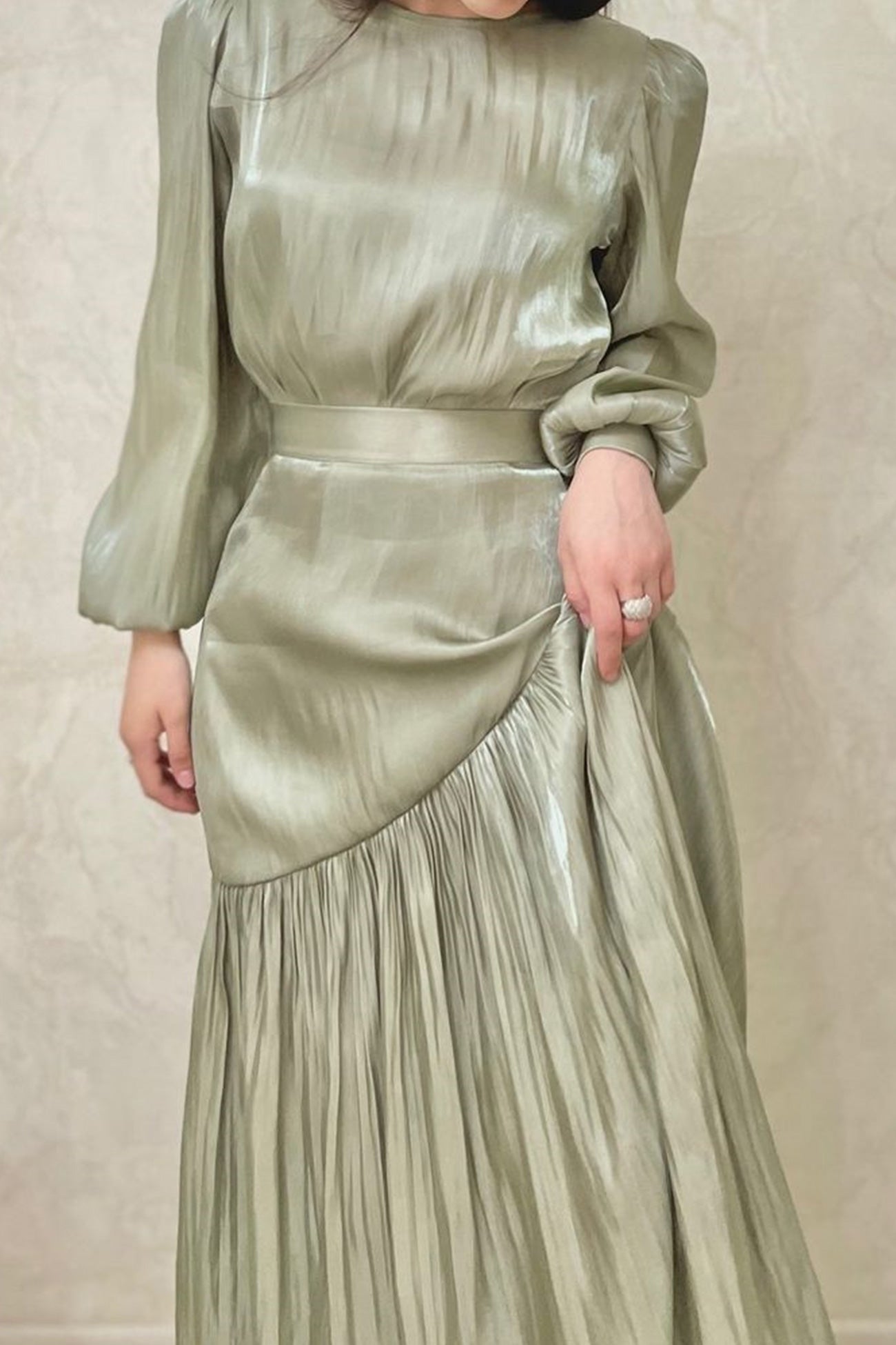 Pleated Tie Waist Long Sleeve Maxi Dress