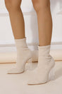 Crystal Heel Stretch Mid Calf Skinny Boots - Apricot / 5.5 is backordered and will ship as soon as it is back in stock.