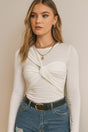 Front Twisted Long Sleeve Modal Top - White / S is backordered and will ship as soon as it is back in stock.