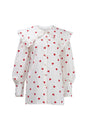 Heart Print Balloon Sleeve Doll Collar Blouse - White / S is backordered and will ship as soon as it is back in stock.