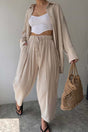 Lapel Long Sleeve Shirt Strappy Long Pants Suits - Khaki / S is backordered and will ship as soon as it is back in stock.