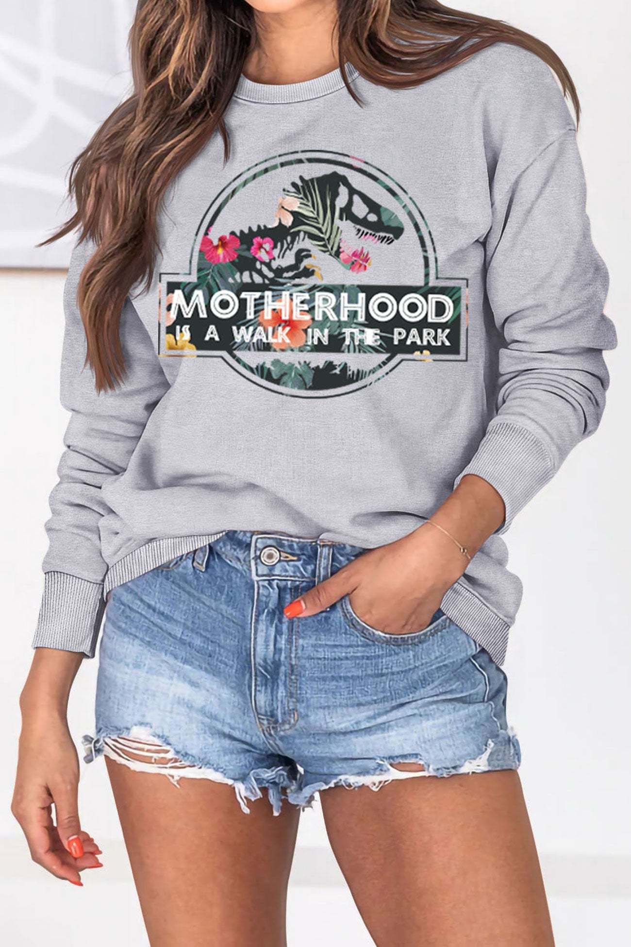 Motherhood Dinosaur Printed Sweatshirt - Almond / S is backordered and will ship as soon as it is back in stock.