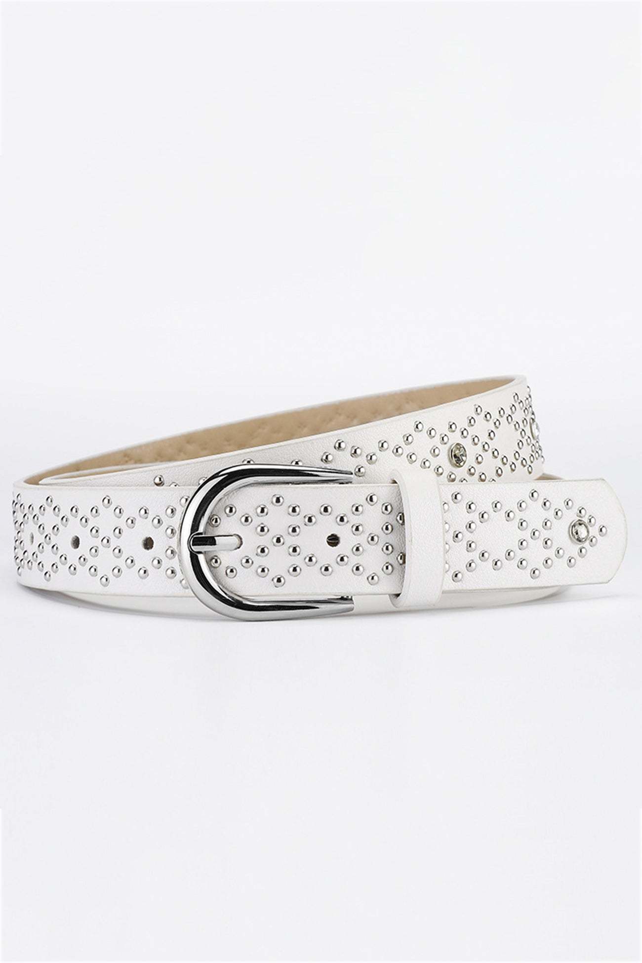 PU Leather Rivet Belt - White / One Size is backordered and will ship as soon as it is back in stock.