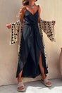 Solid Color V Neck Sleeveless Slit Jumpsuit