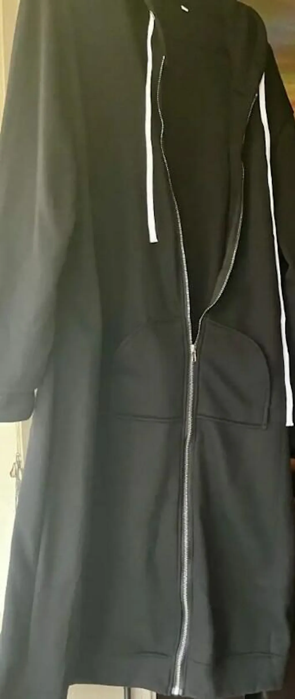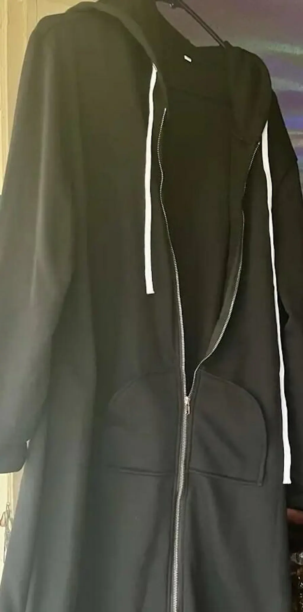 Solid Zip Up Drawstring Hooded Long Cardigan