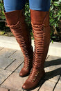 Strappy Leather Over The Knee Boots - Brown / 5.5 is backordered and will ship as soon as it is back in stock.