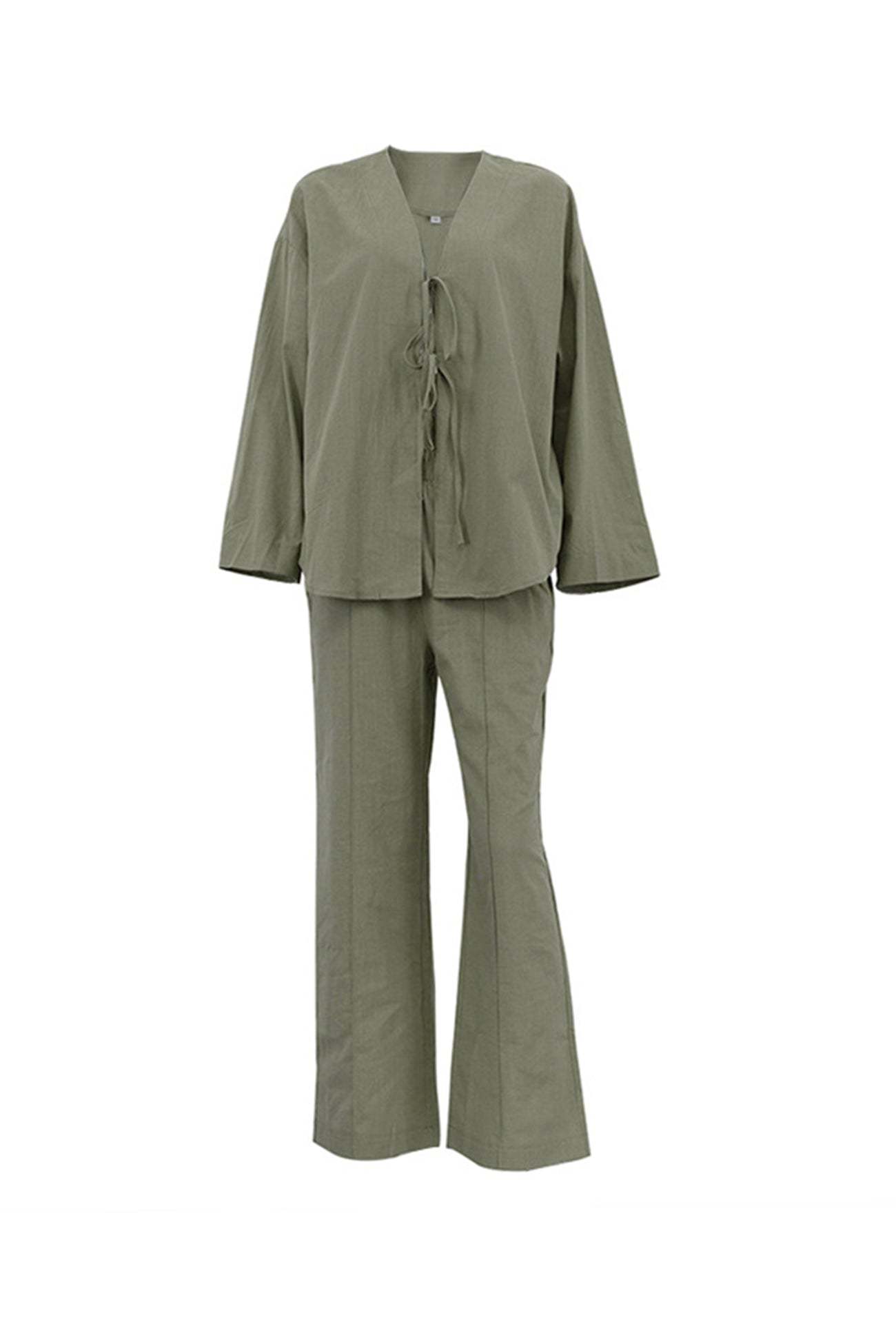 Tie-front Long Sleeve Shirt Cotton Suits - Green / S is backordered and will ship as soon as it is back in stock.