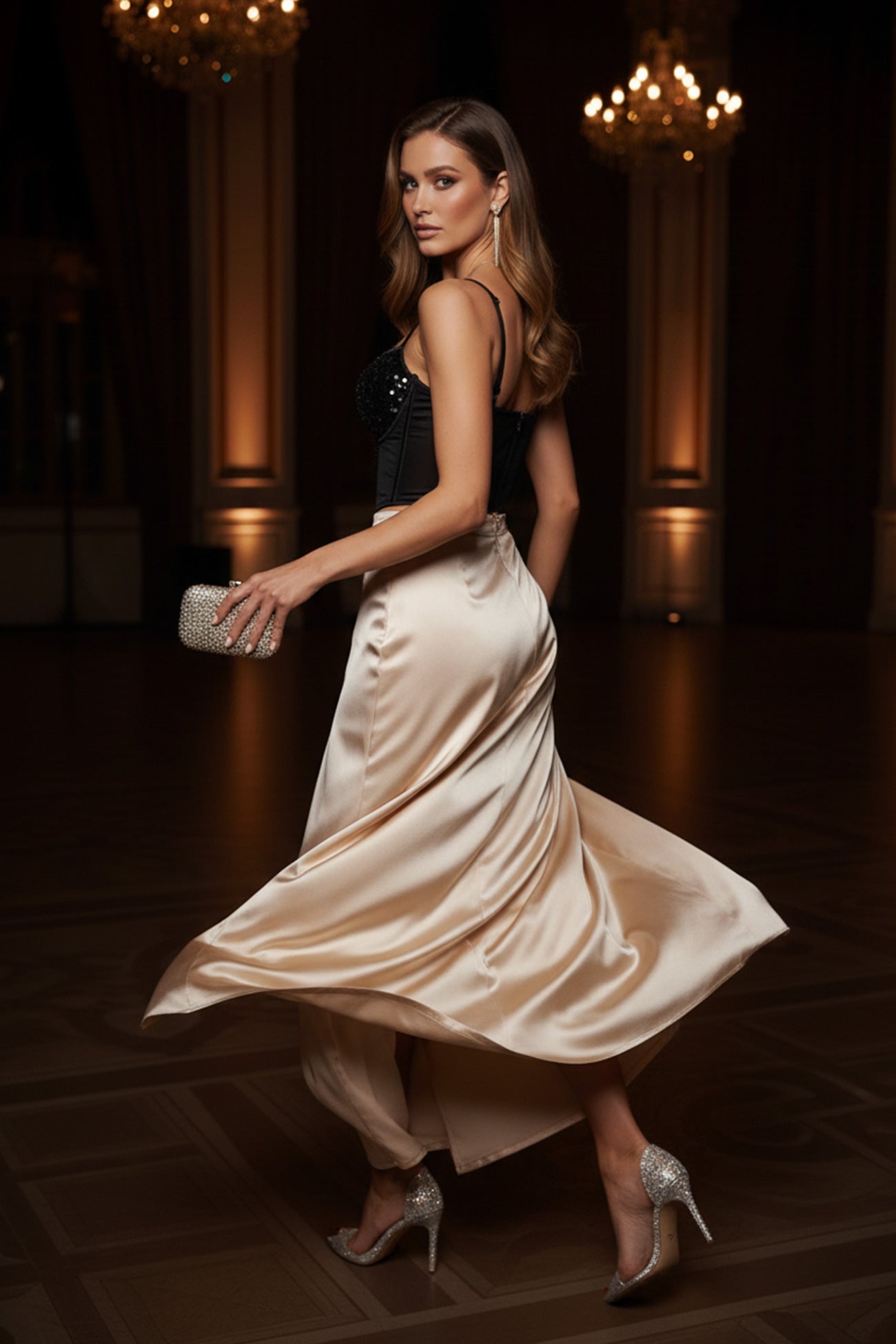 Velvet Patchwork Sequins Cami Top - Black / XS is backordered and will ship as soon as it is back in stock.